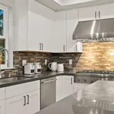 - Kitchen: Cooktop - Gas, Countertop - Quartz, Dishwasher, Exhaust Fan, Freezer, Garbage Disposal, Hood Over Range, Ice Maker, Island, Microwave, Oven - Gas, Pantry, Refrigerator, Wine Refrigerator