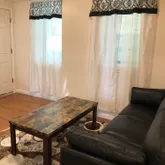5. The living room is thoughtfully furnished with a sofa, couches, a coffee table, end tables, and a dining table with chairs. Each bedroom features windows for natural light, a closet, a full-size bed with six built-in storage drawers, a desk, and a chair--providing a complete, ready-to-live-in space. Pricing: