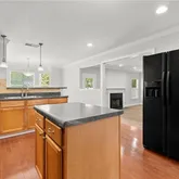 - Kitchen Features: Breakfast Bar, Breakfast Room, Cabinets Stain, Eat-in Kitchen, Kitchen Island, Pantry Walk-In, Solid Surface Counters, View to Family Room