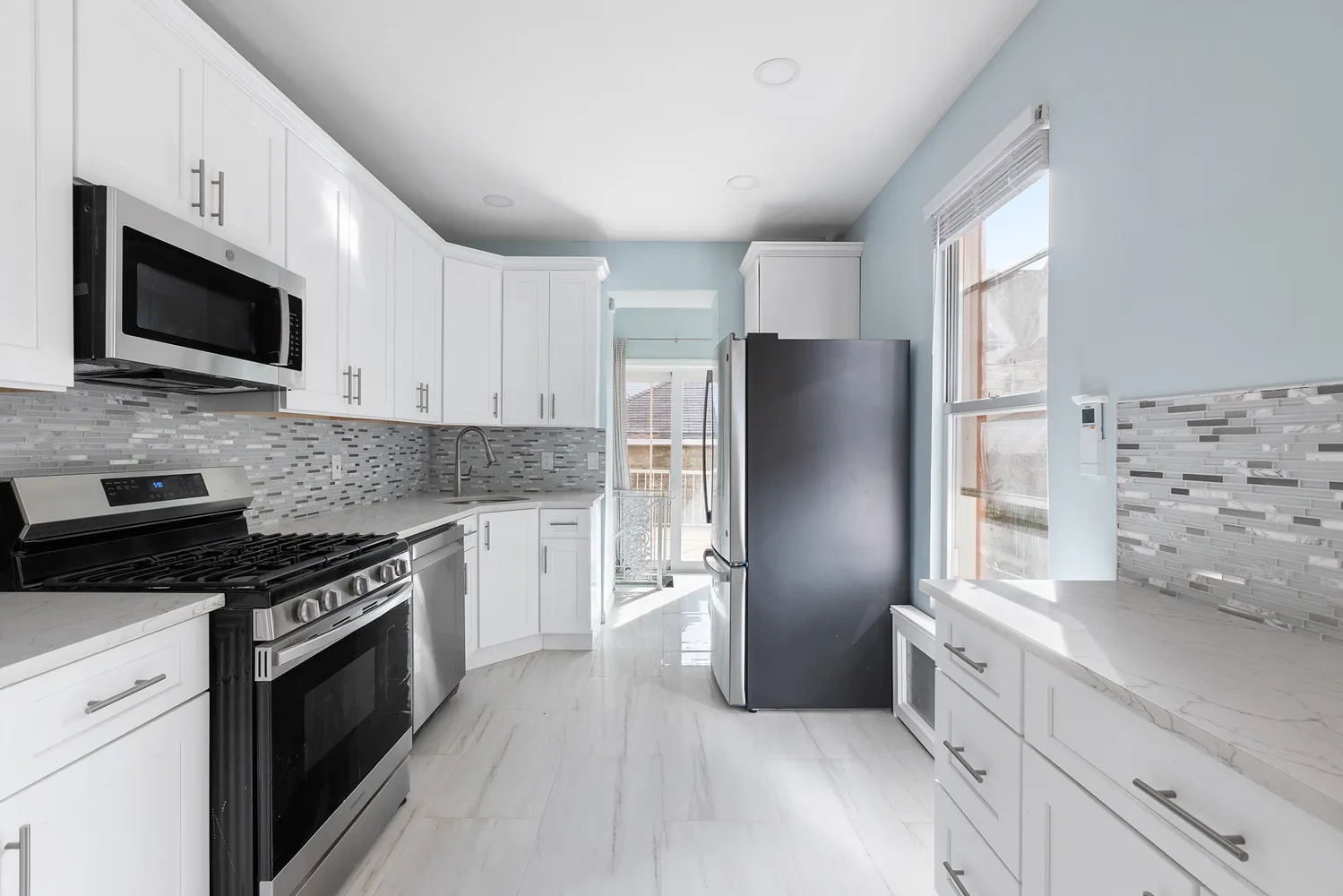 The heart of the home is the modern kitchen featuring stainless steel appliances and ample counter space. Just off the kitchen is a spacious patio and backyard, ideal for summer barbecues, relaxation, and entertaining, an absolute dream for any New Yorker.