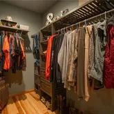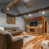 - Interior Features: Beamed Ceilings, Custom Cabinetry, Natural Woodwork, Open Floorplan, Pantry, Recessed Lighting, See Remarks, Solid Surface Countertop(s), Vaulted Ceiling(s), Walk-In Closet(s), Workshop/Hobby Area