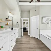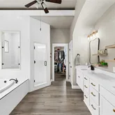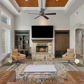 - Interior Features: Bookcases, Built-in Features, Ceiling Fan(s), Crown Molding, Coffered Ceilings, Separate Formal Dining Room, Double Vanity, High Ceilings, Kitchen Island, Multiple Living Areas, Multiple Dining Areas, Main Level Master, Open Floorplan, Pantry, Quartz Counters, Recessed Lighting, See Remarks, Storage, Smart Home, Soaking Tub, Wired For Data
