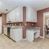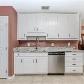 - Kitchen Features: Cabinets White, Eat-in Kitchen, Stone Counters, View to Family Room