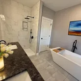 - Interior: High Ceilings, Master On Main Level, Pulldown Attic Stairs, Separate Shower, Soaking Tub, Split Bedroom Plan, Tile Bath, Walk-In Closet(s)