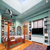 Light fills the space from enormous skylights in both the living room and master bedroom. A custom kitchen features extensive storage and is appointed with a Viking convection stove, Fisher & Paykel dishwasher drawers, paneled Sub-Zero refrigerator and stone countertops. The spacious master bedroom is complete with heated flooring, multiple walk-in closets, impressive millwork and exposed brick. The bathroom features a soaking tub and is outfitted completely in Indian slate. A washer and dryer is conveniently located adjacent to the bathroom.