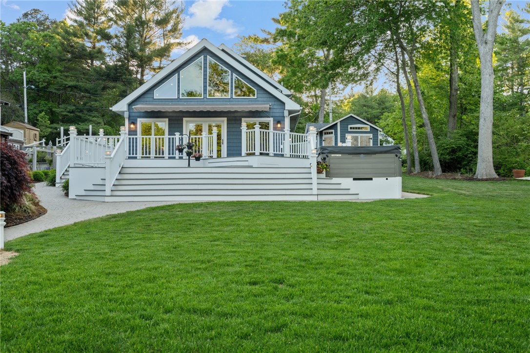 Experience the Waterfront lifestyle with this amazing and totally custom 4 bedroom chalet cape featuring 20' ceilings, central air, red birch hardwoods and granite throughout. The quality is everywhere... Andersen Windows and slider, new appliances, custom blinds in every window, a gorgeous cherry wet bar entertainment center with gas fireplace and a 65" TV swivel mount. The workmanship of the one of a kind staircase and hidden storage areas are fun to explore. Custom lighting inside and out include...Experience the Waterfront lifestyle with this amazing and totally custom 4 bedroom chalet cape featuring 20' ceilings, central air, red birch hardwoods and granite throughout. The quality is everywhere... Andersen Windows and slider, new appliances, custom blinds in every window, a gorgeous cherry wet bar entertainment center with gas fireplace and a 65" TV swivel mount. The workmanship of the one of a kind staircase and hidden storage areas are fun to explore. Custom lighting inside and out include everything from soft accents up to strobe and disco lights for the occasional get togethers. Outdoor living is why you are here! From the Bald Eagle fly by's, state record bass fishing, stocked trout and miles of undisturbed kayaking you will be surprised year after year. The outdoor living areas have thousands of square feet of stamped concrete and Trex decking. New 4 bed septic in 2020! There are three sheds and a garage size workshop with a 100 amp sub-panel, professional landscaping, new sod lawn with irrigation, dock lighting, outdoor speakers, live well, solar lit flag pole, kayak rack, custom lit awning and a drive in dock to make landing the boat real easy! Feels like you're deep in the woods but only minutes to Rte. 95 and shopping.