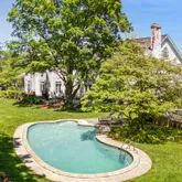 - Public Remarks: Ideally sited on more than two acres just minutes from town, this timeless and light-filled colonial offers the perfect blend of classic elegance and modern luxury. Graciously scaled rooms begin with an expansive foyer that provides a stunning front-to-back view, setting the tone for the rest of the home. The main residence features a private gym, home theater, custom 1,000-bottle wine cellar, six en suite bedrooms, luxurious primary suite with two full baths and sitting room. The first-floor office, complete with full bath, offers flexibility as a guest suite. Thoughtful amenities include laundry rooms on both the first and second floors, an enviable pantry, and a spacious mudroom. Outside, a gunite pool, expansive terrace and kitchen garden. Charming guesthouse across the front yard.