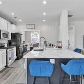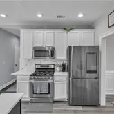 - Kitchen Features: Cabinets White, Eat-in Kitchen, Kitchen Island, Solid Surface Counters