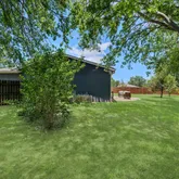 unwind in the evening in the backyard, recently enhanced with a new fence and mature trees lining the perimeter for