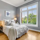 The laundry room is equipped with high-end front-loading stackable washer and dryer, a convenient storage cabinet with pullout shelves, a built-in drying rack, and an ironing board. Notable features include building security with keypad door lock and visitor parking available in the secure garage, lots of closet storage, 10-11’ (tray) ceilings, adjustable recessed lighting, upgraded trim and molding, custom-made UV and noise-blocking window inserts. New water heater installed June 2025.