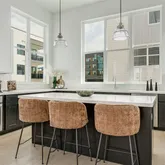 The gourmet island kitchen features Bosch luxury SS appliances, Shaker-style cabinetry, a pantry, and bar seating. Upstairs on the third level, the sunlit primary suite impresses with oversized windows and a spa-inspired ensuite bath. A secondary bedroom with ensuite bath also occupies the third floor, while the entry-level offers a versatile bonus bedroom or home office.