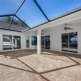 Updated single-family residence located in the non-gated Duncan Groves community. This home offers 4 bedrooms plus a den, 3 bathrooms, and is situated on a nearly half-acre, fully fenced lot with mature landscaping. Total square footage is 3,683 sq. ft., with 2,721 sq. ft. under air. Recent updates include fresh exterior paint and luxury vinyl flooring throughout. Interior features include vaulted and volume ceilings, a foyer entry, formal dining area, and a great room with large sliding glass doors providing abundant natural light. Additional features include crown molding, decorative niches, ceiling fans, chandeliers, custom plantation shutters, and tall baseboards. The kitchen is equipped with stainless steel appliances, granite countertops, a stylish & decorative backsplash above the cooktop, an 8-foot double-door built-in pantry, coffee station, and breakfast bar. Dining area is adjacent to the kitchen and provides access to a paved and screened lanai measuring approximately 350 sq. ft. Plenty of room for future outdoor kitchen. Split-bedroom floor plan with all bedrooms featuring walk-in closets and built-in shelving. The primary suite includes dual sinks, vanity area, garden tub, separate shower, and private water closet. Bedrooms 2 and 3 share a Jack-and-Jill bathroom with dual sinks and tub/shower combination. Bedroom 4 and the 3rd bathroom are located near the living area; the 3rd bathroom includes a step-in shower and offers potential access to the exterior. Additional features include a separate laundry room with washer and dryer, water softener system, and a three-car garage with attic access. Located near A-rated schools. Standard 1year home warranty plan included.