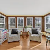 Step onto the inviting front porch and into a home filled with warmth and personality. Just inside, an enclosed sunroom wrapped in three walls of windows and framed by French doors is the perfect spot for morning coffee, a reading nook, or a bright play space.
