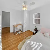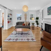 The primary bedroom includes a private en-suite bathroom, complemented...This beautiful white-washed brick Colonial welcomes you with an inviting columned front porch that sets the tone for the charm found throughout the home. The spacious living room features a fireplace and custom built-in display and bookshelves, creating a warm and elegant gathering space. A formal dining room offers the perfect setting for entertaining, while the renovated kitchen provides both style and functionality for everyday living.