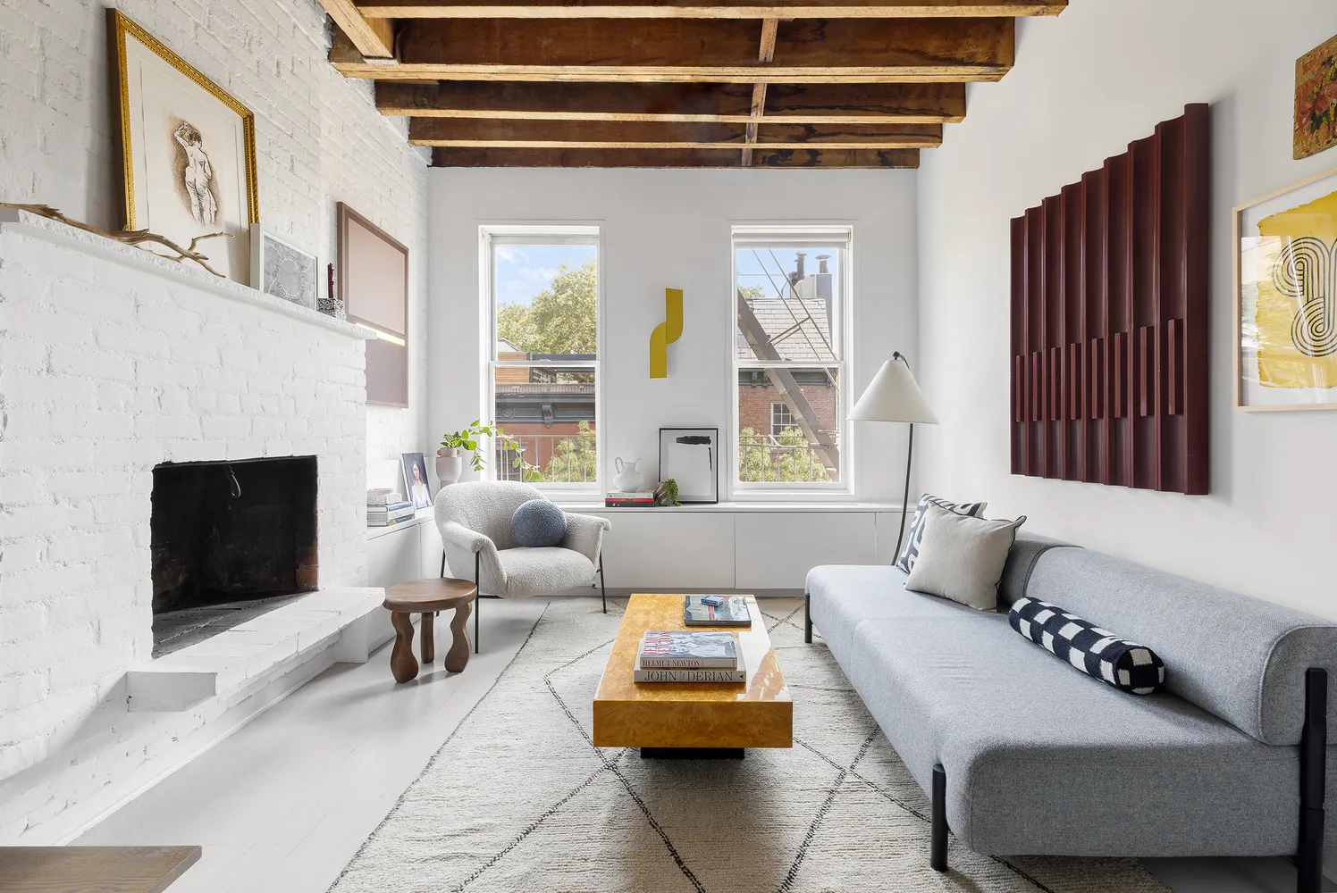 Arrive on the lower entertaining level and be swept away by soaring exposed beam ceilings, hardwood floors, and swaths of painted brick. The south-facing living room invites you to relax alongside...This impeccable one-bedroom, one-bathroom penthouse duplex wows with beautiful interiors filled with original architectural details, 10’4” ceiling height on both floors, outstanding storage, and an ultra-desirable location on what is arguably one of the best blocks in the heart of the coveted West Village.