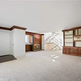 The home showcases beautiful architectural details, including stained wood paneling and crown molding. Expansive windows throughout invite abundant natural light, enhancing the thoughtful layout across each level.