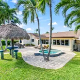 Welcome to Tropic Palms! This luxurious 2 bedroom, 2 bath house has it all: kayaks, hot tub/pool, fresh bass fishing, BBQ, and eat-in kitchen as well as a safe and family-friendly neighborhood. This home boasts porcelain tile floors throughout, quartzite countertops, upgraded kitchen and baths, generator hookup, impact windows and doors and a beautiful open floor plan. The spacious Florida room can easily be converted to a third bedroom. Plus enjoy a beautiful sunrise or sunset on your own private...Welcome to Tropic Palms! This luxurious 2 bedroom, 2 bath house has it all: kayaks, hot tub/pool, fresh bass fishing, BBQ, and eat-in kitchen as well as a safe and family-friendly neighborhood. This home boasts porcelain tile floors throughout, quartzite countertops, upgraded kitchen and baths, generator hookup, impact windows and doors and a beautiful open floor plan. The spacious Florida room can easily be converted to a third bedroom. Plus enjoy a beautiful sunrise or sunset on your own private dock with outdoor patio and long gulf stream views. Continue to rent this home seasonally or enjoy for yourself in this family friendly home.