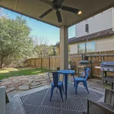 Designed for both everyday living and entertaining, the gourmet kitchen features a gas range, stainless steel appliances, generous counter space, a breakfast bar, and a walk-in pantry. The living and dining areas are filled with natural light and flow seamlessly to a covered patio and fenced yard overlooking the tranquil greenbelt—perfect for relaxing or hosting guests.