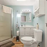 - Room Bathroom Features: Bathtub, Low Flow Shower, Low Flow Toilet(s), Shower, Corian Counters, Double Sinks in Primary Bath, Exhaust fan(s), Linen Closet/Storage, Main Floor Full Bath, Remodeled, Separate tub and shower, Soaking Tub, Upgraded, Walk-in shower