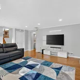 Additional upgrades include Trex decking on the rear deck, new Thompson Creek windows, new hardwood floors in both the living and dining rooms, and updated lighting throughout the home, enhancing the bright and inviting interior.