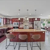 - RoomDescription 1: Entry, Formal Living Room, Formal Dining Room, Kitchen/stainless steel appliances/ island/ dining area and which opens to family room, powder room, office/gym