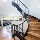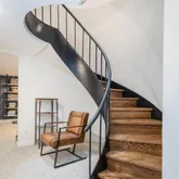 One of the home's most remarkable features is the original curved central staircase, a sculptural masterpiece in itself, spanning all four floors and illuminated by a large overhead skylight. Truly a work of art.