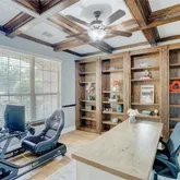 Step inside to discover timeless architectural details, including soaring ceilings, elegant moldings, decorative art niches, and an abundance of storage. Recent upgrades—such as engineered oak wood floors and new carpet (May 2025)—enhance the home’s fresh, refined feel. A dedicated study with rich coffered ceilings, double French doors, and a full wall of built-ins provides an inspiring space for work or study.