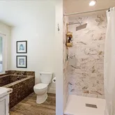 - Bathroom: Double Sinks, Shower and Tub, Tile, Tub in Primary Bedroom, Updated Bath, Full on Ground Floor, Showers over Tubs - 2+, Primary - Oversized Tub