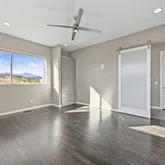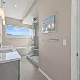 - Room Description: En suite five-piece primary bath with walk-in shower, soaking tub, and barn door entry