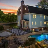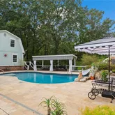 fountains, and wooded/seasonal Mountain views frame a custom-built pool with slide and outdoor shower. Grand In-Law Quarters – A private 3-bedroom suite with its own entrance, driveway, kitchen, dining room, living spaces, laundry, and marble bath. Perfect for