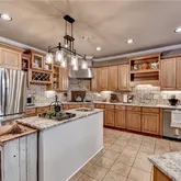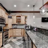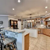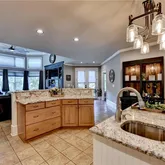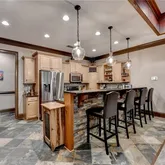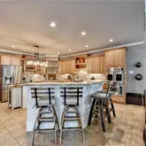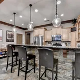 - Kitchen Features: Breakfast Bar, Cabinets Stain, Kitchen Island, Pantry Walk-In, Stone Counters, View to Family Room