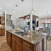 - Kitchen Features: Breakfast Bar, Breakfast Room, Cabinets Stain, Eat-in Kitchen, Keeping Room, Kitchen Island, Pantry Walk-In, Stone Counters, View to Family Room, Wine Rack