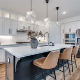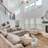 From the moment you step inside, you’ll notice the soaring ceilings and abundant natural light that fill the open-concept living and dining areas. The spacious family room flows effortlessly into a chef-inspired kitchen complete with quartz countertops, a designer backsplash, stainless steel appliances, gas cooktop, and an oversized island perfect for entertaining or casual everyday living.
