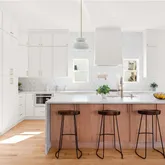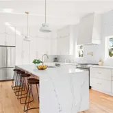 - Kitchen Features: Cabinets White, Kitchen Island, Solid Surface Counters, View to Family Room, Other