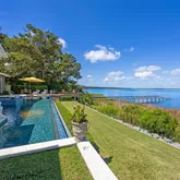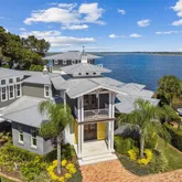 Experience luxury at "Southern Cove", a 2018 custom-built residence offering breathtaking views from nearly every room. This 5,700 sq. ft. home is complemented by an attached 4-bay garage with an 800 + sq. ft. accessory dwelling above—perfect for guests or extended family. Architectural highlights include antique brick accents, a durable metal roof, Covestro energy-efficient technology, Hardi-shake siding, concrete masonry with 2"x6" upper framing, & PGT windows. Inside, the craftsmanship continues with architecturally detailed ceilings, multiple fireplaces, wood, stone, & tile flooring throughout (no carpet), and a luxurious primary suite. Multiple HVAC systems & tankless water heaters ensure year-round comfort. The heart of the home is an outstanding kitchen that opens to a spacious family room beneath a soaring 19-foot ceiling. A custom brick pub adds warmth & character, while sliding doors lead to a covered and screened verandah complete with a summer kitchen & fireplace—ideal for entertaining. Outdoors, the infinity-edge pool seems to spill into the deep waters of the Bells River, creating a setting as relaxing as it is remarkable. With excellent maintenance by its original owner, this property is move-in ready and designed for both elegance and ease. For the outdoor enthusiast, this home offers the ultimate waterfront lifestyle. Schedule your private tour of Southern Cove today and experience Amelia Island living at its finest.