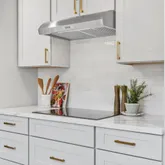 - Kitchen: Cooktop - Electric, Countertop - Quartz, Dishwasher, Garbage Disposal, Hookups - Gas, Oven - Built-In, Refrigerator