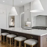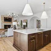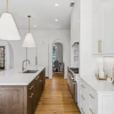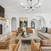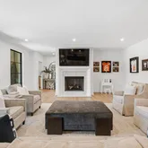 The light-filled two-story floor plan features a stunning primary suite on the main level, along with expansive living spaces highlighted by floor-to-ceiling windows and four beautiful fireplaces. The chef's kitchen is a true showstopper, complete with a breathtaking walk-in pantry, and a custom Venetian plaster range hood that serves as a stunning focal point.