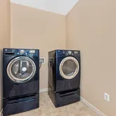 - Appliances: Built-In Microwave, Central Vacuum, Cooktop, Dishwasher, Dryer, Exhaust Fan, Oven - Wall, Refrigerator, Washer