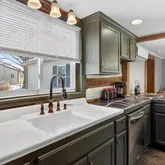 - Room Features: Flooring - Vinyl, Kitchen - Eat-in, Dining Area, Lighting - Recessed, Kitchen - Electric Cooking, Breakfast Bar, Wood Stove