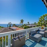 Enjoy sweeping views of the Pacific Ocean and Catalina Island, culminating each evening in vibrant, unobstructed sunsets that paint the sky from the comfort of your living room. The primary suite serves as a private escape where luxury meets the tranquility of the coast. French doors open onto a private ocean-view deck, allowing the sound of the waves and the cool Pacific breeze to become a permanent fixture of your morning routine. Beyond the interior lies a private, fully enclosed backyard designed for the ultimate "al fresco" lifestyle. This secluded sanctuary offers a blend of lush landscaping and functional luxury, creating an ideal environment for both intimate family dinners and large-scale year round soirees. The outdoor space features a premium grill, ample stone countertop prep space and barstools for gathering. Enjoy the outdoor fire-pit to enhance the cozy, yet open aesthetic.