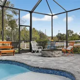 - Pool Features: Gunite, Heated, In Ground, Lighting, Outside Bath Access, Salt Water, Screen Enclosure