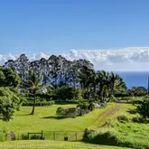 - Paved Kanna and Chin Chuck Roads on two sides of the property and easy access from paved highway. Over the past 15 years, the property has been transformed from unimproved pasture to a beautiful, fertile and productive homestead farm. Two driveways lead into the property from Kanna Rd. The longer driveway is on an old cane road. It leads to a recently built multipurpose structure located at the high point of the land, which overlooks the pasture, crop field, gardens and the ocean beyond. The shorter paved driveway leads past the auto storage to the kamaaina main house located closer to Kanna Road, providing access to the covered outdoor food and produce preparation space. There are three bedrooms and a full bathroom in the main house, kitchen with a view of Mauna Kea, full basement, and living room that opens onto a lanai with ocean views. The newer multipurpose building includes a large primary space, together w/an office/study, and room to expand. It has the potential to function as a single-purpose space such as a dance or music studio, or as an open-floorplan multifunction area. This is a functioning agricultural property, with covered storage for multiple farm vehicles and machinery, which convey with the sale, and room for a workshop. The future owner may consider adding even more value and versatility with another driveway, to Chin Chuck Road.