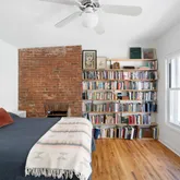The apartment encompasses a large master bedroom with a decorative fireplace and built-in shelves beautifully tucked into the exposed brick walls, creating a loft-like feeling. The additional bedroom has the same exposure as the MBR and is adjacent. Two large floor-to-ceiling closets in the master bedroom and secondary bedroom are outfitted with Elfa storage systems. Sound dampening gas filled double pane windows ensure quiet and rest in the bedrooms.