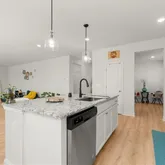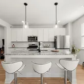 - Kitchen Features: Breakfast Bar, Cabinets White, Kitchen Island, Pantry, Solid Surface Counters, View to Family Room