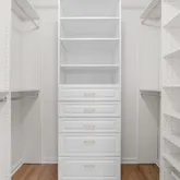 The two spacious bedrooms each include new ceiling fans with lights along with custom closet organization systems to maximize storage and function.