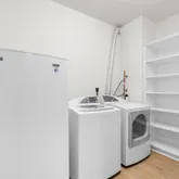 Both bathrooms have been beautifully remodeled with new vanities, quartz countertops, modern fixtures, and clean, timeless finishes. Additional highlights include a separate in-unit laundry room with extra storage, a second freezer and new HVAC system for year-round comfort.