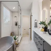 - Room Description: En suite primary bathroom with steam shower, radiant floors, and gorgeous soaking tub.