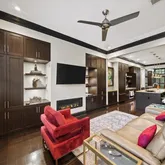 - Interior Features: Bookcases, Crown Molding, Disappearing Attic Stairs, Double Vanity, Dry Bar, Entrance Foyer, High Ceilings 9 ft Main, High Ceilings 10 ft Main, High Speed Internet, Low Flow Plumbing Fixtures, Recessed Lighting, Walk-In Closet(s)