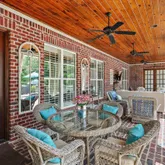 • Architectural Grandeur: Classic red brick exterior with white trim and black shutters, arched windows framed by towering two-story columns and wraparound porches that exude timeless plantation style. Main Features Include: