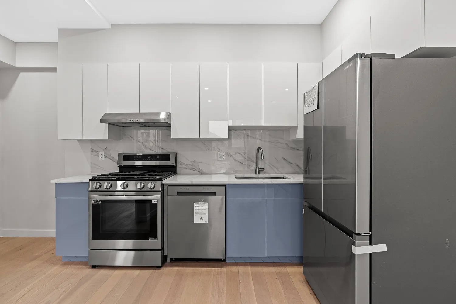 This bright and spacious one-bedroom home features oversized windows, tall ceilings, and a modern kitchen with brand-new high-end appliances. The bedroom easily accommodates a queen or king-size bed, while the living room offers a smart layout that fits a large L-shaped sofa and TV setup comfortably. Additional highlights include hardwood floors throughout, generous closet space, and a beautifully finished modern bathroom.